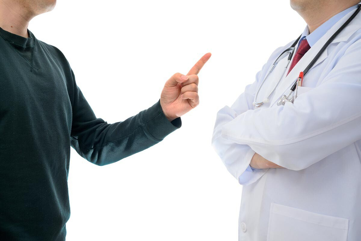 В свою очередь врачи жалуются на то, что пациенты нередко переходят грань в общении: устраивают скандал, оскорбляют. Напоминаем про инструкцию Минздрава, где поясняется, что делать врачу, который оказался под необоснованным прессингом со стороны пациента.