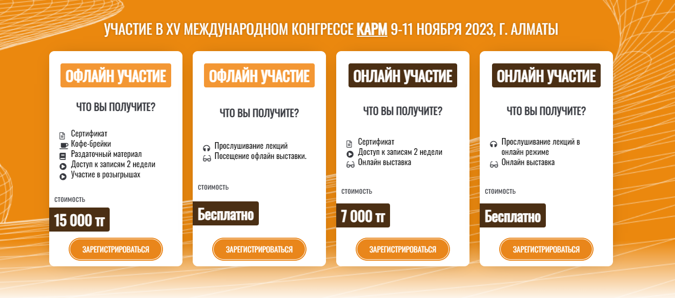 - 8-9 ноября Пре-конгресс мКАРМ начало в 14:00 в отеле КазЖол Парк ул. Наурызбай батыра 108. Взнос за участие в мКАРМ — 25 000 тенге.