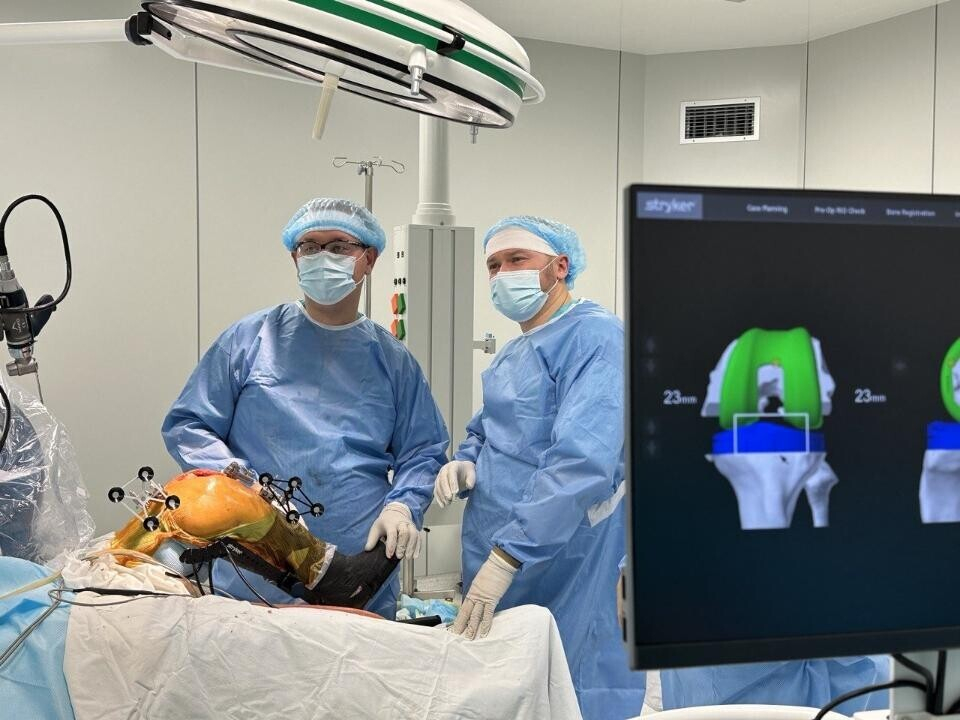 Специально для этих операций привезли уникальную роботизированную систему американского производства. Благодаря 3D-сканам поврежденной зоны совместно с хирургом робот позволяет имплантировать эндопротез с математически безупречным расчетом всех параметров.