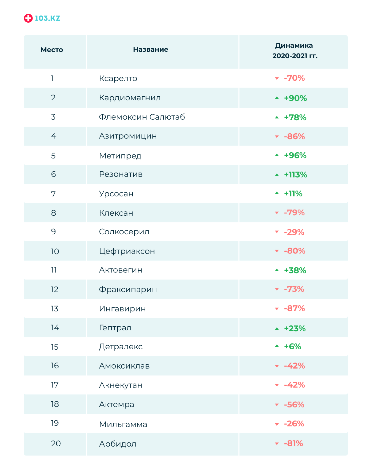 ТОП-20 лекарств по запросам аудитории 103.KZ