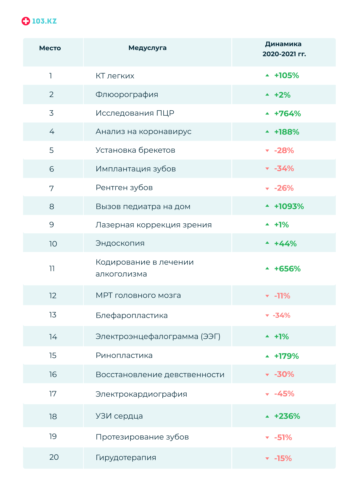 ТОП-20 медуслуг по запросам аудитории 103.KZ