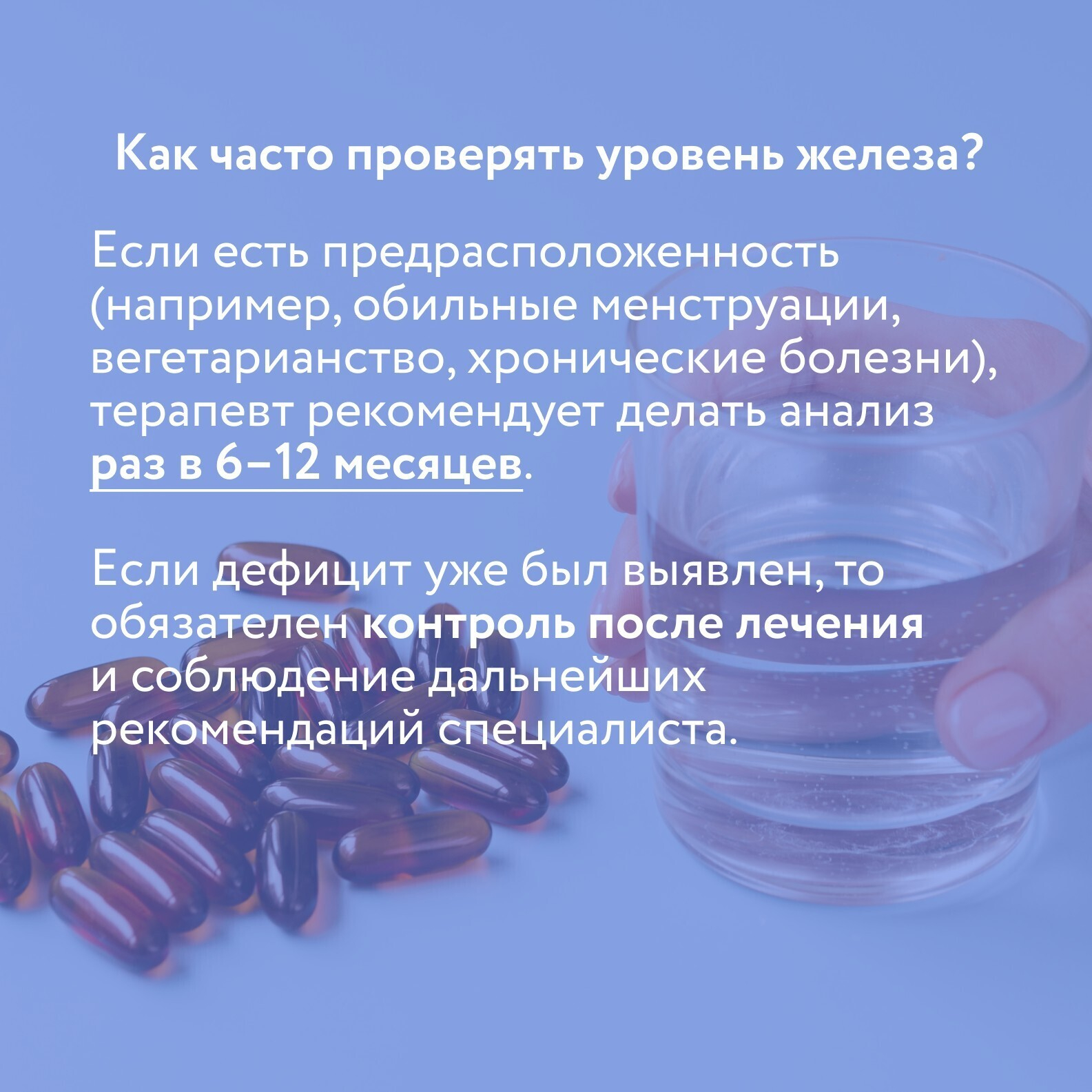 – Обычно 3–6 месяцев, но все зависит от изначальной ситуации, образа жизни и многих других факторов. Важно не только восстановить гемоглобин, но и пополнить запасы (ферритин), поэтому даже после нормализации анализов прием продолжают еще 1–2 месяца, – объясняет врач.