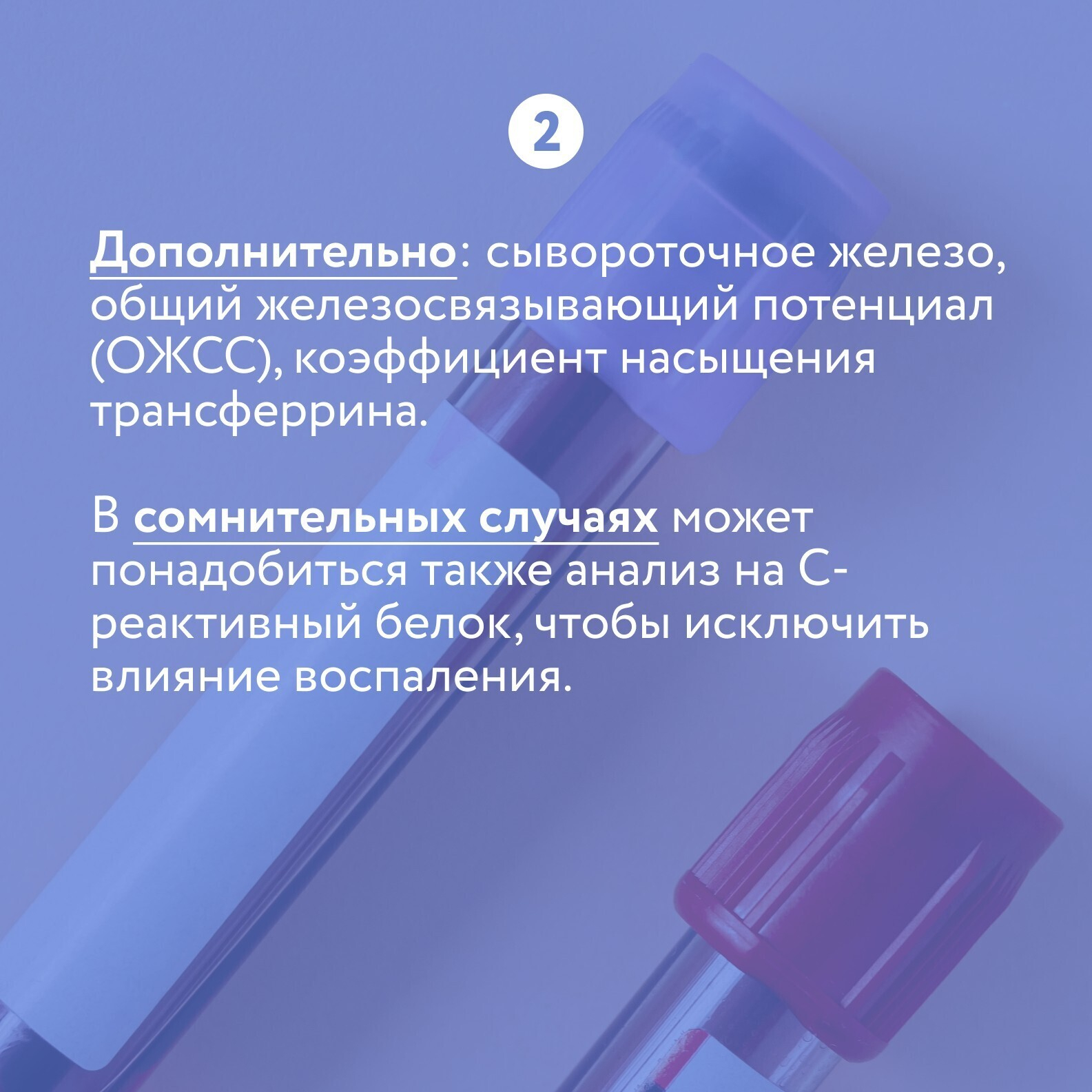 – Ферритин отражает запасы железа в организме и снижается раньше, чем падает гемоглобин. Поэтому он более чувствительный маркер. Но важно учитывать, что ферритин – белок острой фазы, он может быть выше нормы при воспалении. В идеале нужно смотреть не только ферритин, но и сывороточное железо, трансферрин, насыщение трансферрина, – говорит доктор.