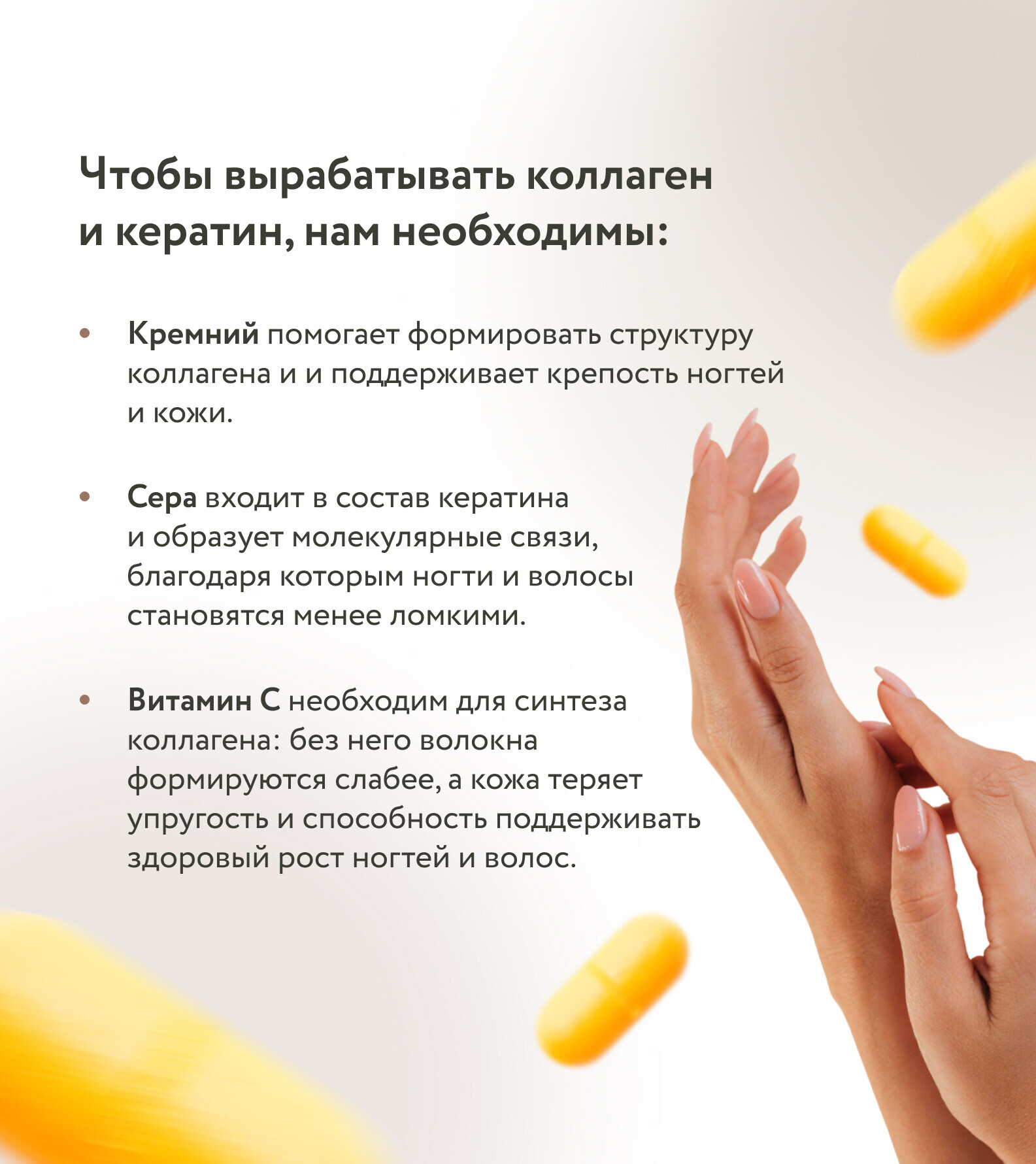 Немного внимания и бережного ухода, правильное питание, поддержка изнутри — и ваша кожа снова станет мягкой, а ногти — прочными.