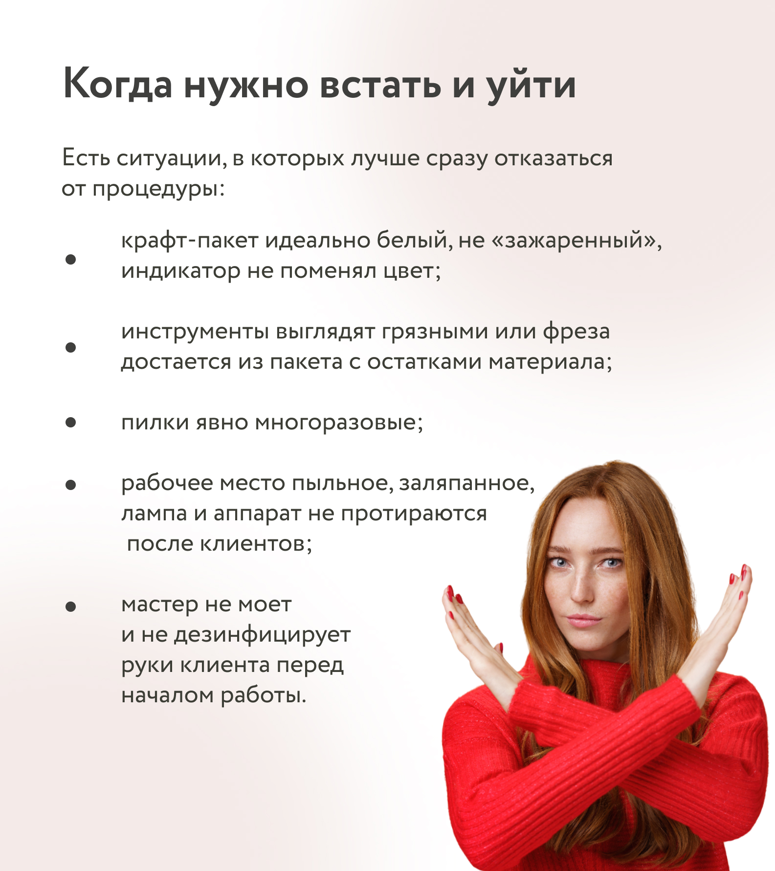 «Если инструмент не простерилизован – я бы встала и ушла», – подчеркивает мастер.