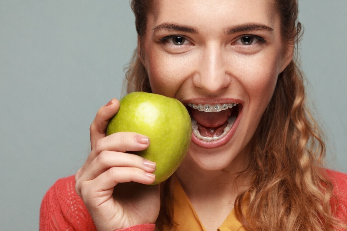 Твердые продукты (особенно чипсы, семечки, сухарики), а также вязкую пищу (ириски, жвачки и желатинки). Во всех остальных случаях столовые приборы вам в помощь! Шашлык, отбивные, яблоки можно порезать на маленькие удобные кусочки, морковку и другие овощи — потереть на терке, сушки и печенья — размочить в чае или молоке. Если трудно жевать, но очень чего-то хочется, почему бы не сделать вкусный смузи в блендере! Не стоит себя ограничивать.