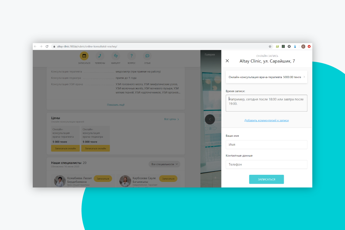 - Позвонить в выбранную клинику или отправить заявку на запись прямо на 103.kz.