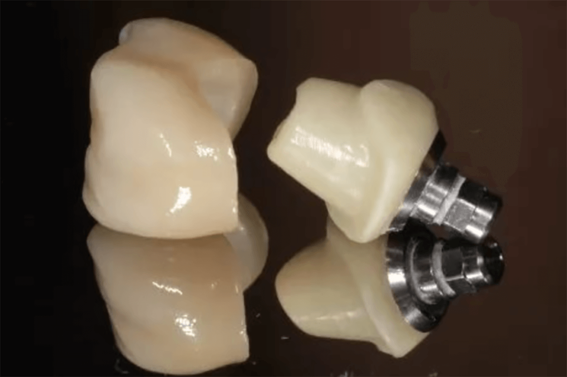 Керамические коронки из диоксида циркония с абатментами из BioHPP — лучший вариант, если коронка на имплантате будет попадать в линию улыбки. Отсутствие металла будет не только придавать коронке естественный вид, но и благодаря керамическому абатменту удастся сохранить естественный цвет десны вокруг имплантата.